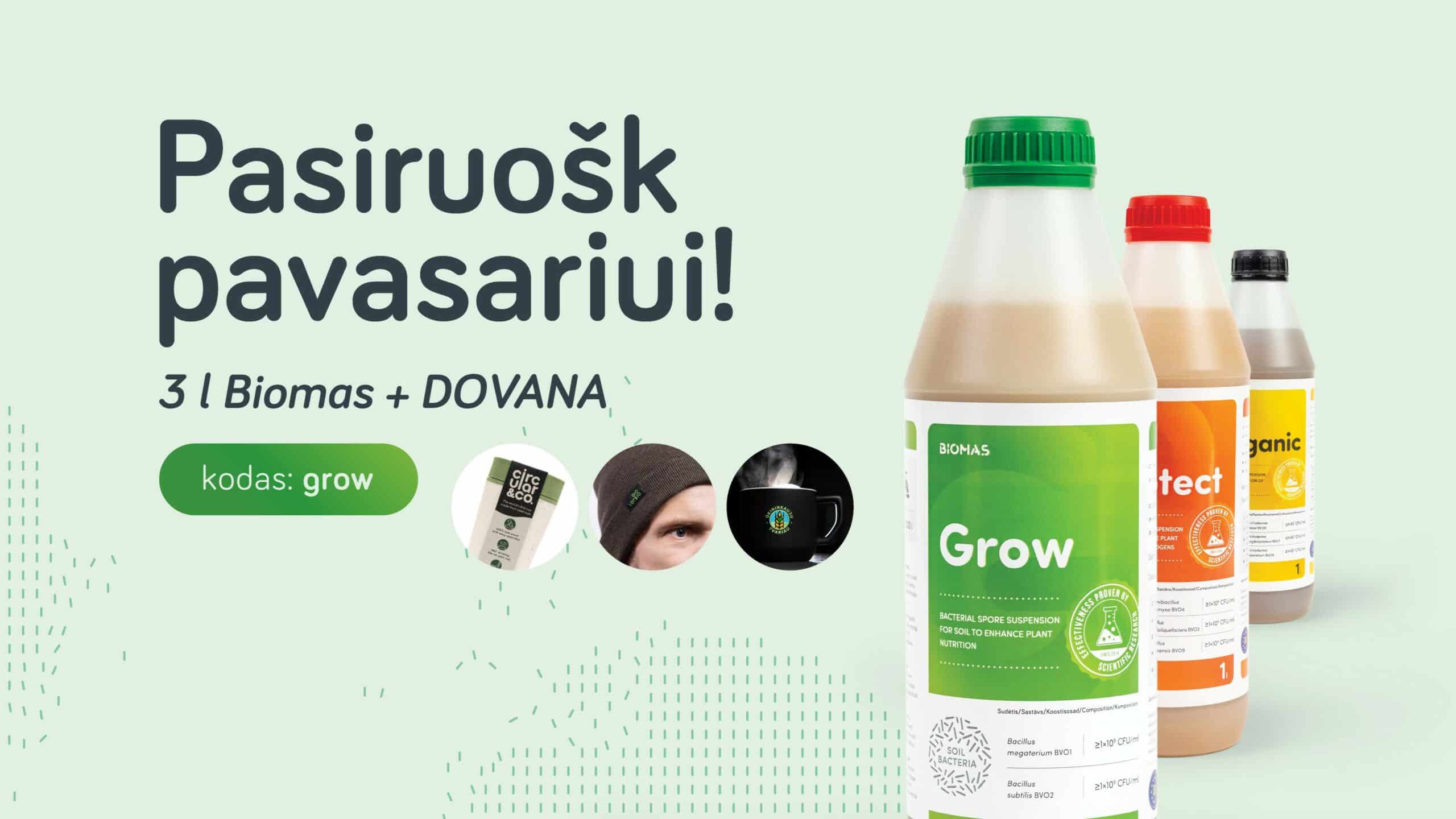 - Įsigyjate bent 3 l Biomas produktų iš „Baltic Agro” arba tiesiog išsiųskite jiems užsakymą per Bioversio el. parduotuvę;